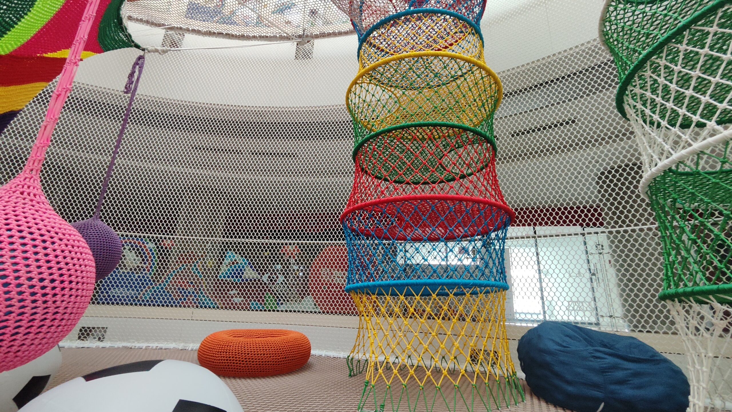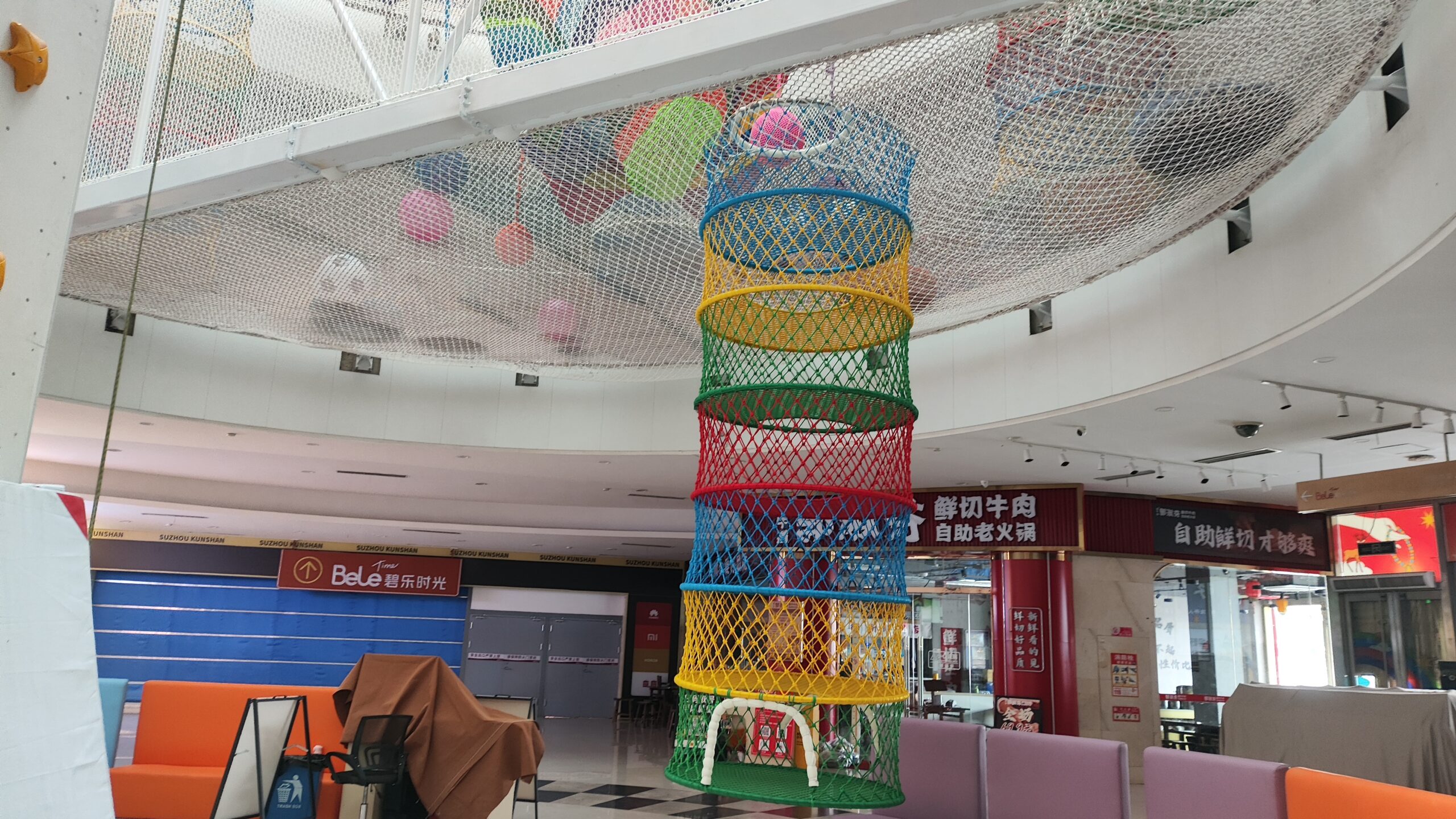 Children can start from the ground, climbing hand-over-foot from one section to the next. Each cylinder serves as a stable holding point and a mini platform for rest, helping to build confidence with height while developing physical strength and coordination, ultimately leading them safely into the overhead net world. It functions both as a practical vertical circulation hub and a standalone, rewarding progressive climbing challenge.